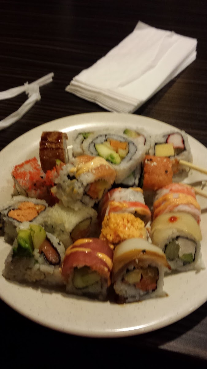 The food was awesome the sushi's fresh, great selections lots to choose from, the place is clean, several different kinds of shrimp, on the weekend they even have oysters, great experience, no waiting plenty of seating in the even serve drinks here and you can also just pick your specific meal like sweet and sour chicken meal or something and not have buffet so Taylor it to yourself.