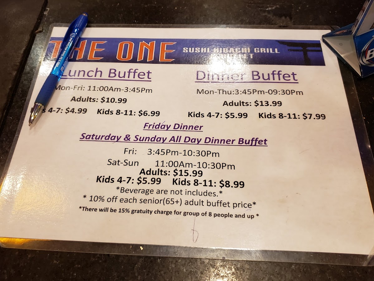 The One Buffet Menu