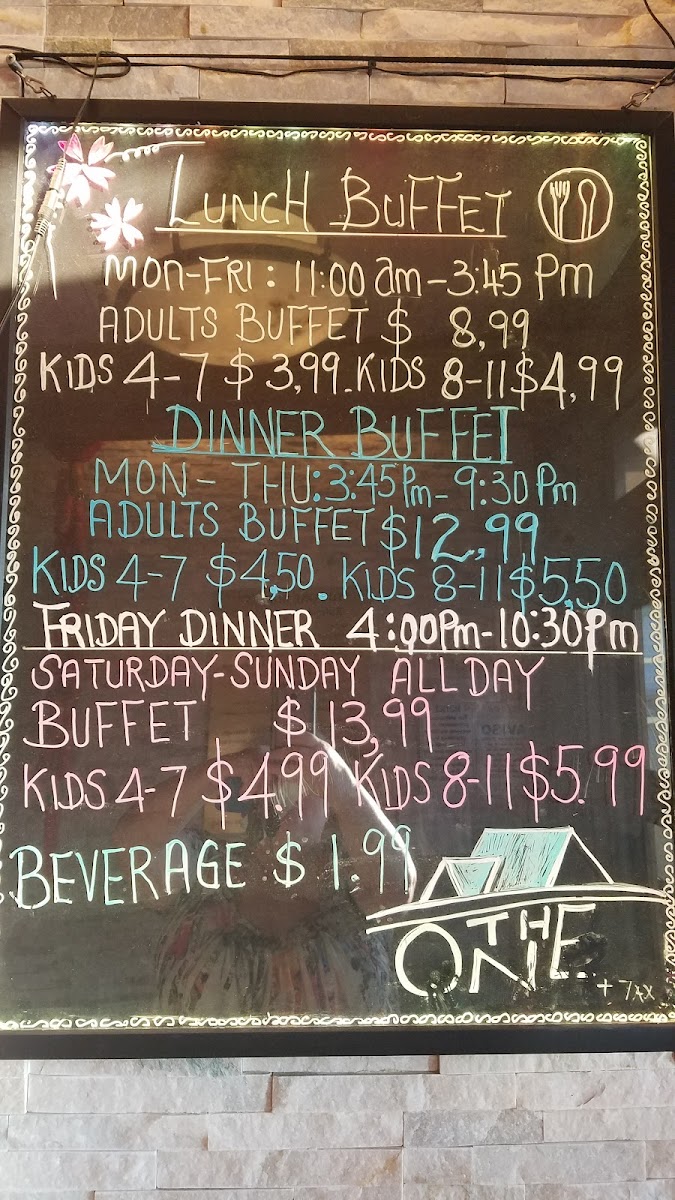 The One Buffet offers a varied and approachable menu that fits perfectly with its casual, welcoming atmosphere. Guests can enjoy a wide range of dishes that cater to different tastes, whether you're looking for fresh seafood, flavorful Asian-inspired entrees, or comforting sushi rolls. The menu showcases crowd-pleasers like crab legs, spicy Szechuan-style shrimp, and a diverse sushi selection including mango rolls and sashimi, alongside a fresh salad bar and hearty sides.